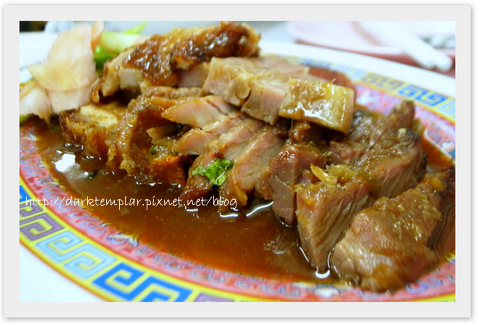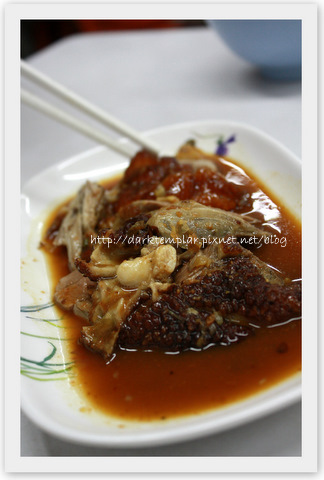 這個烤鴨呢,肉質很軟嫩,應該是經過長時間烤出來的,皮下脂肪咕嚕下去一點也不膩口,但最重要的是那個醬汁,感覺上是醬油、薑汁及梅子醬調配出來的,依然記得我第一次去吃到第一口的那個情景:一放入嘴,還沒咬兩口,整個人呆住,然後眼淚就掉下來了,這分明就是台灣南部沾蕃茄的那個醬汁嘛~(拭淚),好感動、好好吃啊~~~