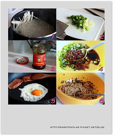 1. 煮麵(菜也丟下去一起煮),用冷水沖一下,瀝乾。